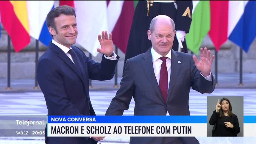 - Os presidente francês e o chanceler alemão falaram ao telefone com o presidente russo. Emmanuel Macron e Olaf Scholz terão pedido um cessar fogo a Vladimir Putin, que se terá mostrado determinado em prosseguir com a invasão.