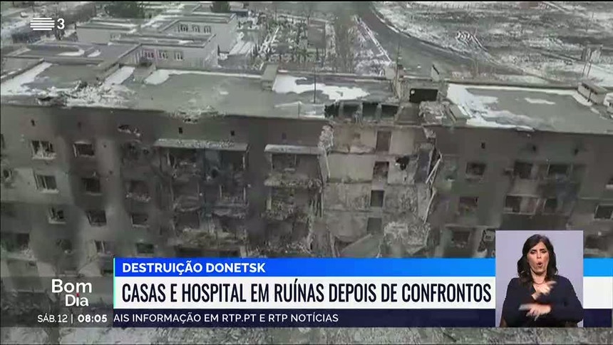 8h13 - Casas e hospital em ruínas depois de confrontos em Donetsk