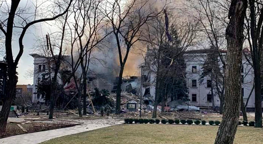 - A Ucrânia acusa a Rússia de ter bombardeado um teatro em Mariupol que abrigava "mais de mil civis". O presidente ucraniano, Volodymyr Zelensky, adiantou ontem que o edifício está "destruído", mas ainda não há um balanço de vítimas mortais. O Ministério russo da Defesa negou o ataque e alegou que o edifício foi destruído por forças nacionalistas ucranianas.