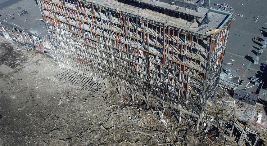 De acordo com os serviços de emergência ucranianos, os bombeiros conseguiram retirar pelo menos um homem dos escombros. Os enviados especiais da RTP testemunharam o cenário de "grande destruição".
