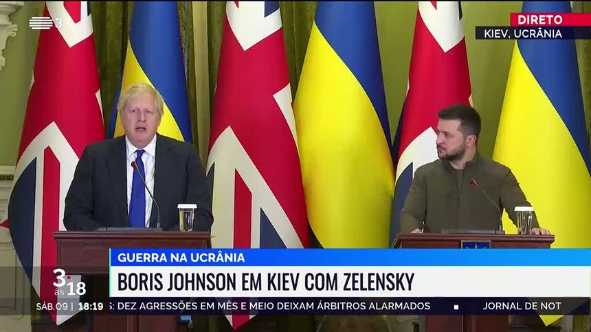- Numa conferência de imprensa após a reunião com Zelensky, Johnson disse que as atrocidades em Bucha - uma pequena cidade perto de Kiev onde foram encontrados centenas de corpos após a retirada das tropas russas - "mancharam permanentemente" a reputação do presidente russo Vladimir Putin. Johnson prometeu ainda, juntamente com os seus aliados, “continuar a dar todo o equipamento e ajuda necessária para que a Ucrânia nunca mais seja invadida”;