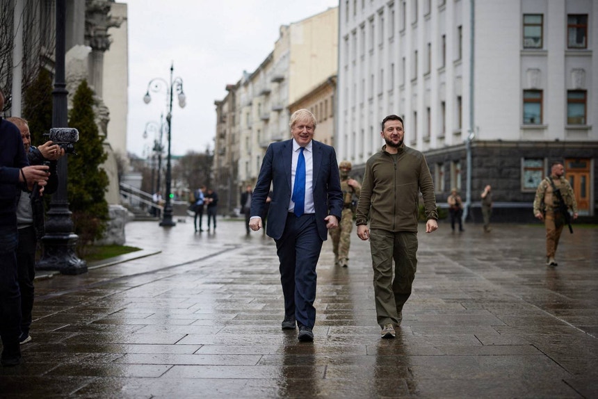 - Boris Johnson fez uma visita surpresa a Kiev, onde esteve reunido com o presidente ucraniano Volodymyr Zelensky. O primeiro-ministro britânico anunciou que enviará mais 120 veículos blindados e novos sistemas de mísseis anti-navio à Ucrânia;
