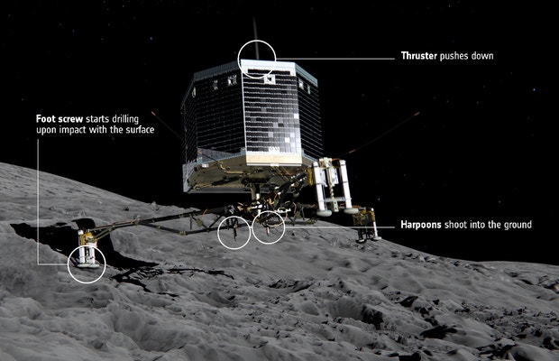 Mas a missão que foi programada ao longo de 25 anos, foi colocada em perigo depois da sonda Philae ter aterrado longe do local programado, devido à baixa gravidade existente no cometa, e de se ter alojado num local sem acesso à luz solar, fonte essencial de energia para trabalhar.