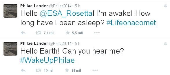 Foram apenas 85 segundos, mas o suficiênte para a Philae "falar" com a sua equipa em terra, tendo perguntado: Olá Terra! Estão a ouvir-me?