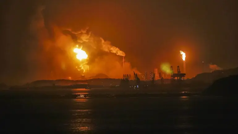 Imagens de vídeo divulgadas pelos meios de comunicação social mostram um edifício industrial com a parte central queimada e parcialmente desmoronada. A causa da explosão é ainda desconhecida.