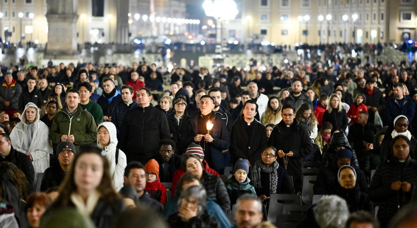 Oração na Praça de São Pedro com a presença de vários peregrinos