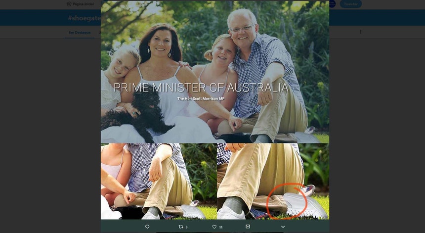 Pelas redes sociais já é conhecido como o #shoegate. O que era para ser uma simples fotografia de família do primeiro-ministro australiano, colocada na página de entrada do site de Scott Morrison, acabou como um dos temas mais falados na internet por estes dias. E tudo porque alguém decidiu retocar a imagem com Photoshop. Grande erro.