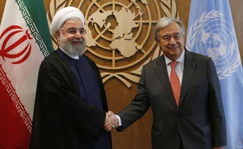 Em comunicado, a ONU revelou que esta segunda-feira, após um encontro, o secretário-geral da ONU, António Guterres, com o Presidente iraniano, Hassan Rouhani, "sublinharam a importância de uma aplicação plena e real do acordo por todos os participantes".