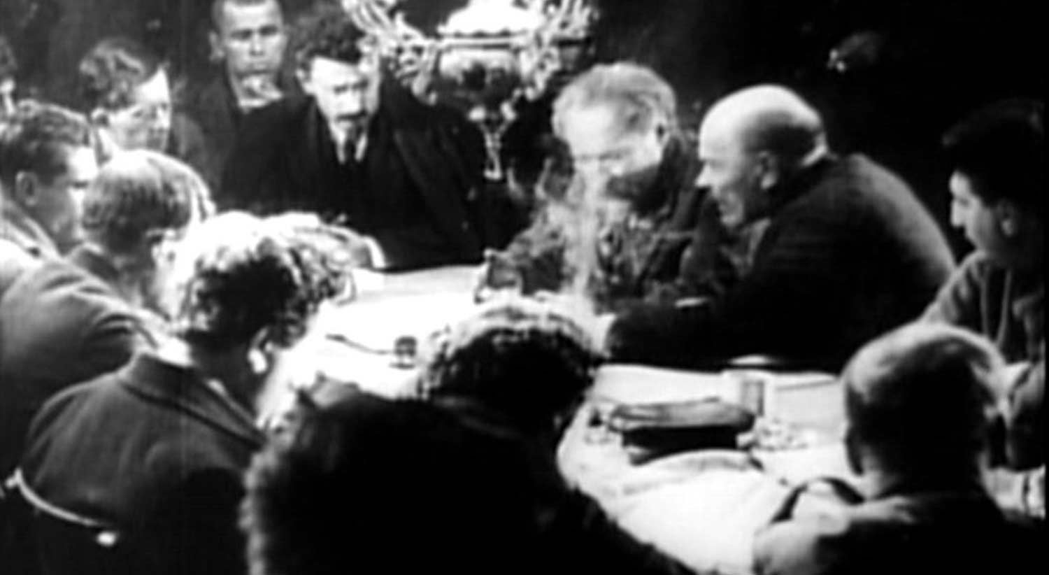 Ao contrário da versão de Eisenstein, Trotsky sublinhava na sua História da Revolução Russa que a revolução de outubro se distinguira da de fevereiro pela ausência de grandes manifestações de massas. Mas explicava, ao mesmo tempo, que essa ausência nada retirava ao protagonismo das massas operárias de Petrogrado na tomada do poder. A metáfora que utiliza para explicar o facto é a do jogo de xadrez: nas fábricas, nos bairros operários, nas trincheiras, por todo o lado fora necessário criar a rede de condições logísticas e de assistência para que o bisturi insurreccional desse o xeque-mate ao adversário, apenas com uma ou duas peças visíveis na finalização.