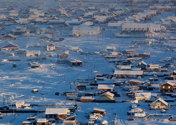Os 920 habitantes russos de Oymyakon, a leste da Sibéria, não estranham as temperaturas negativas. Esta é a localidade habitada mais fria do planeta e a temperatura média no inverno ronda os 50 graus negativos.