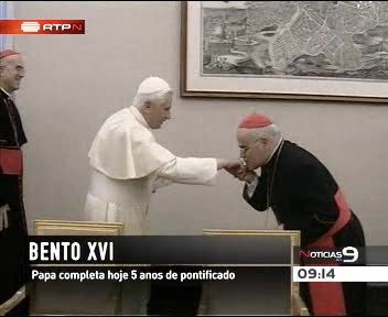 Bento XVI completa hoje cinco anos de pontificado. O aniversário comemora-se numa altura em que o Vaticano enfrenta uma das mais graves crises relacionada com acusações de pedofilia. O cardeal Joseph Ratzinger foi eleito papa a 19 de Abril de 2005, num dos mais rápidos conclaves de sempre. Logo no início suscitou muitas reservas, dado o papel que teve à frente da Congregação para a Doutrina da Fé, a sucessora da Inquisição.