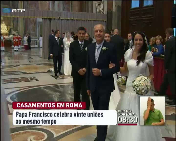 O Papa Francisco celebra hoje, e pela primeira vez desde que é Papa, o casamento de 20 casais. Entre esses casamentos, há uma noiva divorciada, alguns casais que viviam já em união de facto e outros já com filhos. Um sinal da abertura do Papa Francisco que defende uma Igreja para todos os fiéis. A união está a decorrer na Basílica de S. Pedro.