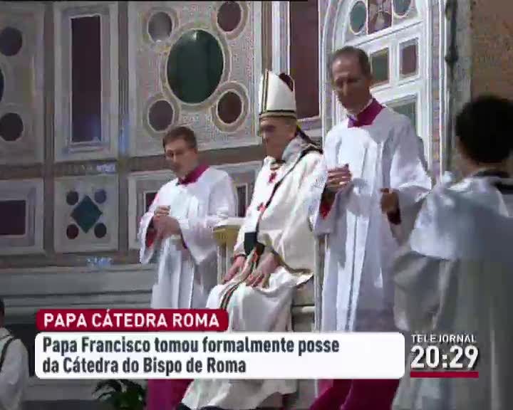 O Papa Francisco tomou esta tarde posse da Cátedra de Bispo de Roma. Menos de um mês depois de ter sido eleito, Jorge Bergoglio foi muito aplaudido na cerimónia realizada na Basílica de São João de Latrão, na capital italiana.