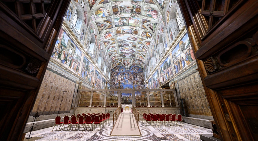 No interior da Capela Sistina, palco da eleição do Papa
