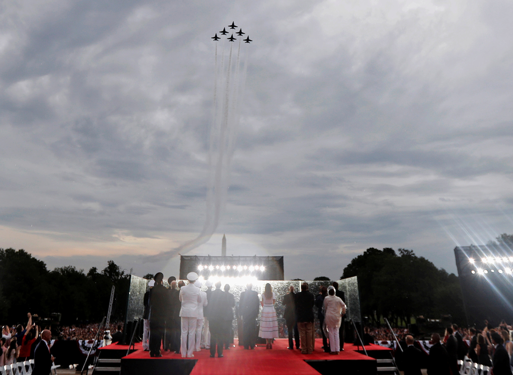 Trump prestou ainda homenagem às forças armadas norte-americanas, no espetáculo de pompa. "Durante mais de 65 anos, nenhuma força área inimiga conseguiu matar um único soldado americano. Porque o céu pertence à América", vangloriou-se Trump, em frente ao Lincoln Memorial.