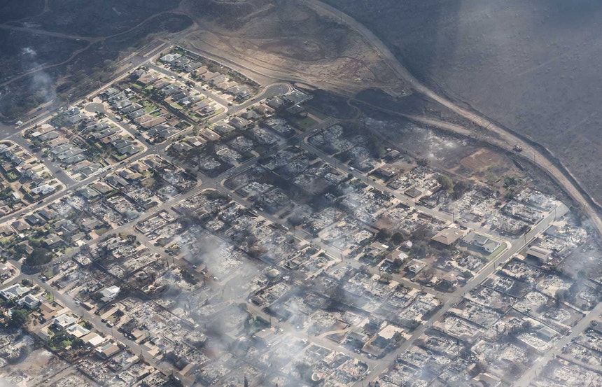Lahaina, anteriormente a capital do reino havaiano, foi parcialmente destruída. O incêndio parece ter consumido a maior parte da orla histórica da cidade, incluindo 271 estruturas e casas.