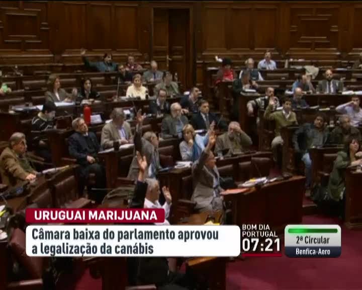 No Uruguai, a Câmara baixa do parlamento aprovou a legalização de cannabis. A medida legislativa foi promovida pelo presidente com o objetivo de minimizar os riscos e reduzir os danos da utilização desta doga. O diploma permite o cultivo, distribuição e comercialização de cannabis, mas precisa ainda de ser ratificado pelo Senado. Se a proposta entrar em vigor, o Uruguai será o primeiro país onde o Estado controlará a produção e venda de cannabis.