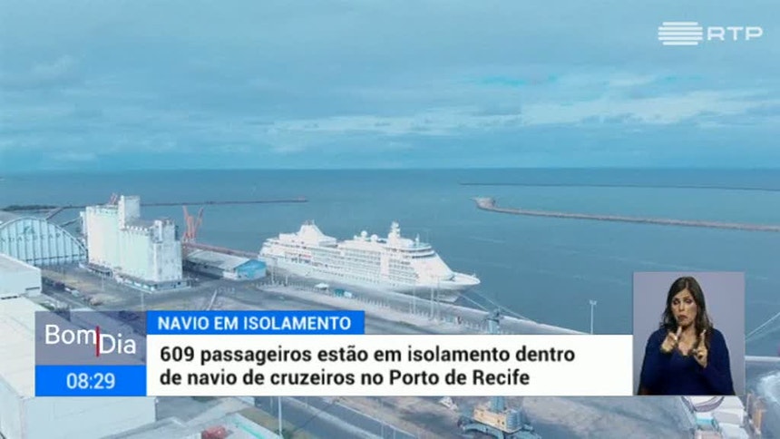 Mais de 600 pessoas estão em isolamento dentro de uma navio de cruzeiro no Porto de Recife, no Brasil.