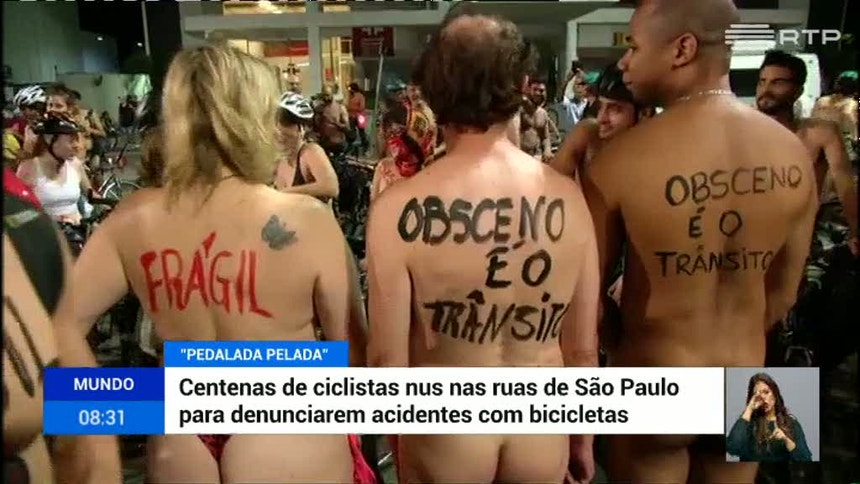 Centenas de ciclistas nus percorreram as ruas de São Paulo para chamarem a atenção para o número de acidentes com bicicletas. "Pedalada Pelada" realiza-se há já dez anos e denuncia a vulnerabilidade daqueles que elegem a bicicleta como estilo de vida.