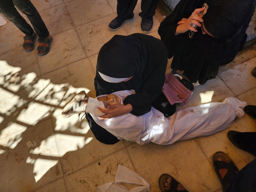 “Mataram o pai, a mãe e os irmãos, apenas duas meninas sobreviveram. Uma delas é um bebé de um ano e dois meses e a outra tem cinco anos”, lamentava-se uma das mulheres palestinianas frente aos corpos dos familiares.