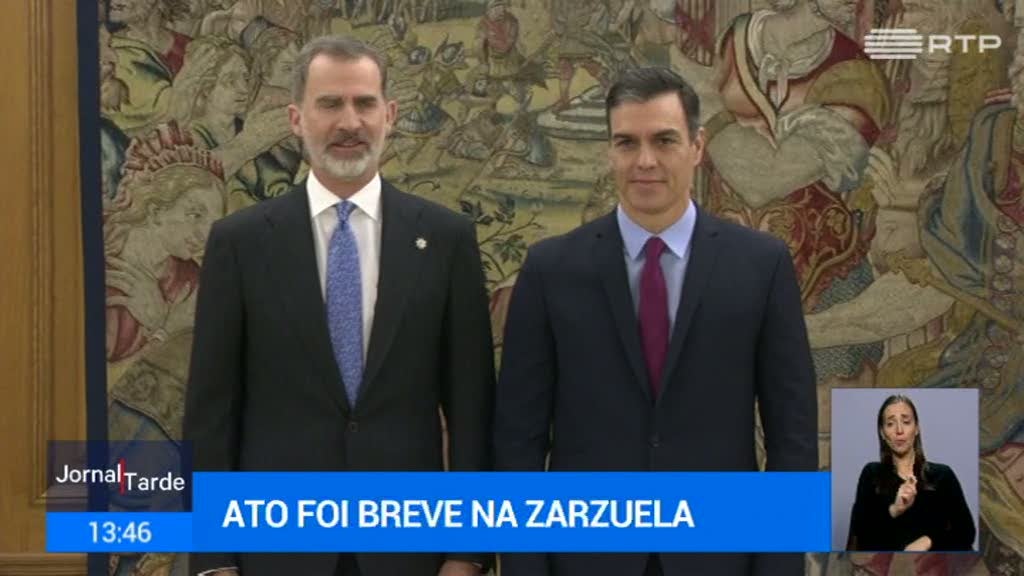 O presidente do Governo espanhol, Pedro Sánchez, assumiu esta quarta-feira o cargo no Palácio da Zarzuela. A cerimónia decorreu perante o rei de Espanha, Filipe VI.