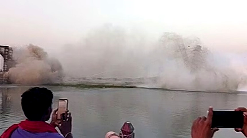 Pela segunda vez. Ponte colapsou na Índia durante o processo de construção