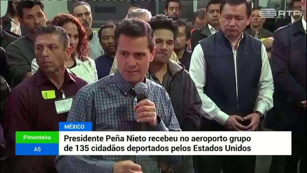 Centro e trinta e cinco mexicanos deportados dos Estados Unidos chegaram na terça-feira à Cidade do México. O Presidente mexicano Enrique Peña Nieto foi ao aeroporto para os receber.