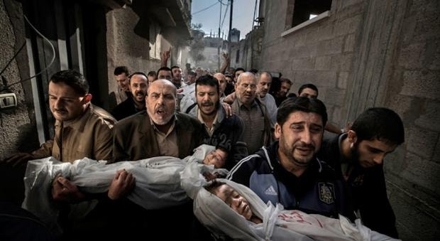 A fotografia em questão, eleita a fotografia do ano pela World Press Photo, retrata dois palestinianos acompanhados por um mar de gente numa rua de Gaza transportando nos braços os cadáveres de duas crianças envoltas em lençóis brancos em direção à mesquita. Mais atrás ia o cadáver do pai das crianças envolto numa mortalha branca e numa maca carregada por alguns compatriotas.
