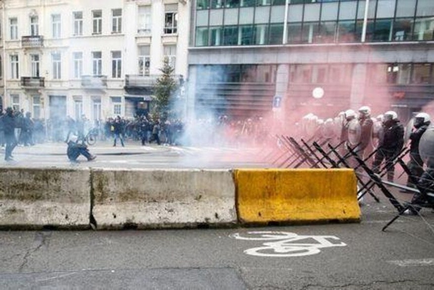 Embora a manifestação tenha decorrido pacificamente ao longo de três horas, a situação degenerou quando os manifestantes chegaram às proximidades de instituições da União Europeia (UE).
