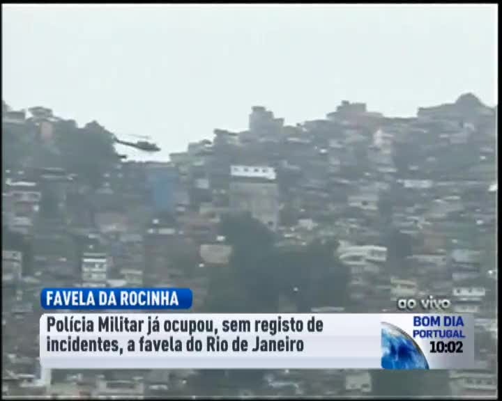 Sem disparar um único tiro, a polícia brasileira ocupou esta manhã três favelas do Rio de Janeiro, Rocinha, Vidigal e Chacará do Céu. A Operação "Choque de Paz" mobiliza 3 mil elementos da polícia, forças especiais e militares. Sete helicópteros estão a sobrevoar a favela da Rocinha , na zona sul da cidade, desde a madrugada. Todos os acessos à zona foram encerrados. As autoridades pretendem acabar com a influencia do tráfico de droga nas três favelas.