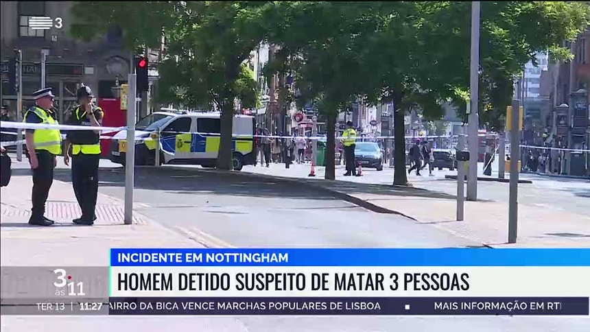 “Um homem de 31 anos foi detido por suspeita de homicídio depois de três pessoas terem sido mortas na cidade”, informou a polícia de Nottinghamshire, num comunicado.