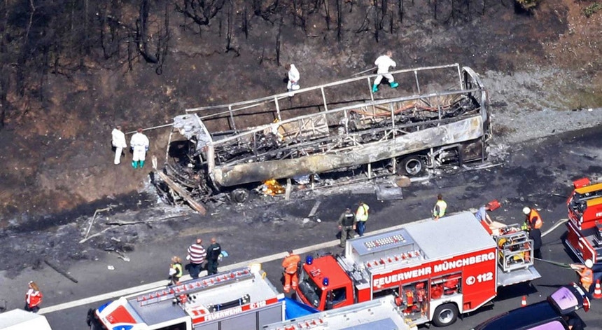 Um autocarro, com 46 turistas idosos e dois condutores, chocou com um camião pouco depois das 07:00 locais (06:00 em Lisboa) e incendiou-se numa autoestrada perto de Munchberg (no estado da Baviera), não muito longe da fronteira com a República Checa.