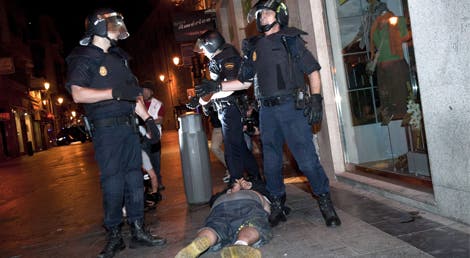 Quando a intervenção policial teve início, o número de pessoas concentradas na Puerta del Sol caíra para 500, a maioria jovens. Em torno da estátua equestre de Carlos III, no centro da praça madrilena, haviam sido erguidos, entretanto, toldos e uma tenda de campanha. Agentes do corpo de intervenção formariam um cordão de segurança para conter uma centena de manifestantes que ainda tentaram regressar à praça. “Amanhã voltaremos”, gritaram.