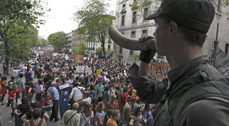 A contestação da Primavera Global ecoou ontem em cidades europeias como Frankfurt, Roma, Atenas e Londres - na capital britânica foram detidos 20 manifestantes. Em Lisboa, cerca de mil pessoas fizeram uma marcha de protesto desde a Avenida da Liberdade até ao Parque Eduardo VII. Um grupo de membros do movimento de “indignados” espera permanecer naquele parque da capital até à próxima terça-feira, promovendo debates sobre temas da atualidade.
