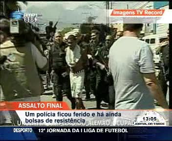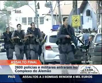 A polícia brasileira deu início à maior operação policial de sempre no Rio de Janeiro. Ao início da manhã, 2600 soldados começaram a entrar no Complexo do Alemão, um conjunto de 12 favelas no Norte da cidade, que durante muito tempo foi um reduto de traficantes de droga. Uma hora e meia mais tarde, o comandante geral da polícia militar reclamava o controlo dos pontos mais importantes para o tráfico de droga.