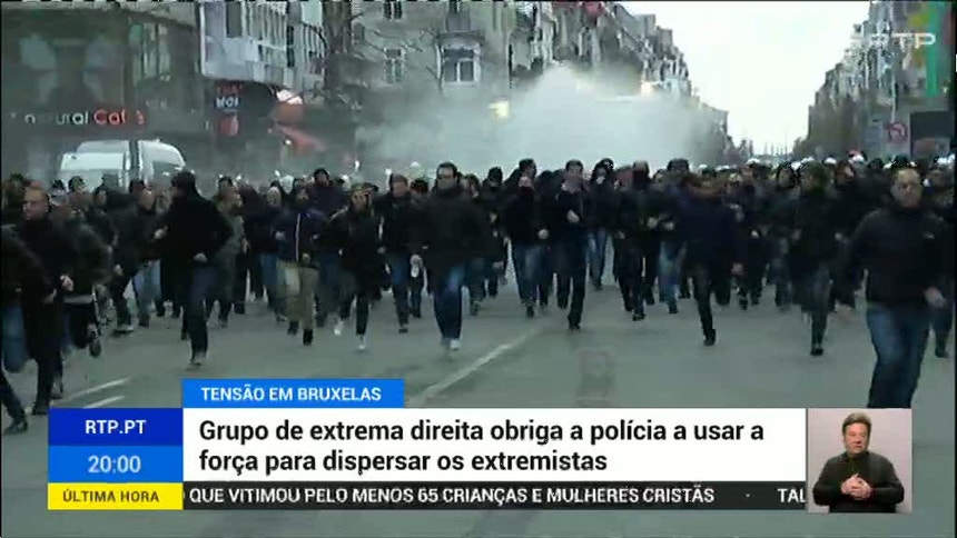 Um grupo de extrema direita invadiu a Praça da Bolsa em Bruxelas onde centenas de pessoas prestavam homenagem às vítimas dos atentados terroristas.