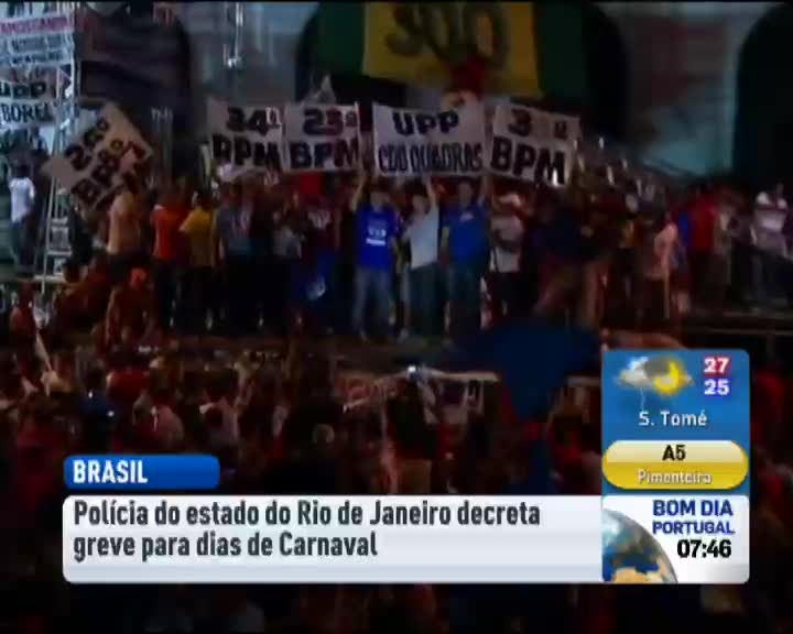 Depois da paralisação da polícia militar em Salvador da Baía, agora é a vez dos polícias civis e militares e do corpo de bombeiros do Rio de Janeiro aderirem à greve. O protesto teve início ontem à noite, quando faltam poucos dias para o início dos festejos do Carnaval. O governo garantiu que a segurança da cidade durante as celebrações estará a cargo de 14 mil militares do exército.