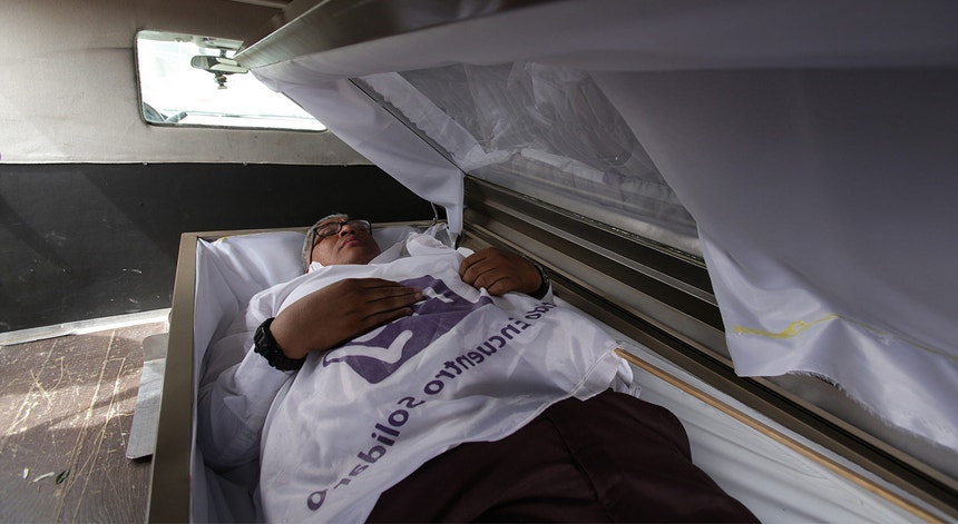 Um candidato a um dos parlamentos regionais do México lançou a campanha eleitoral deitado num caixão, para sublinhar as milhares de mortes causadas pela pandemia da covid-19 e pela violência associada aos cartéis.