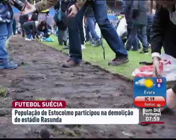 Milhares de habitantes de Estocolmo participaram na demolição do estádio Rasunda na capital sueca. Mais de cinco mil pessoas levaram para casa uma recordação do primeiro estádio no mundo a acolher dois mundiais de futebol masculino e feminino. Um em 1958 e o outro em 1995. O estádio foi construído em 1937. No local vão ser construídos apartamentos e escritórios.