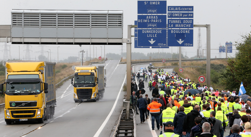 Porto de Calais bloqueado por camiões e cordão humano