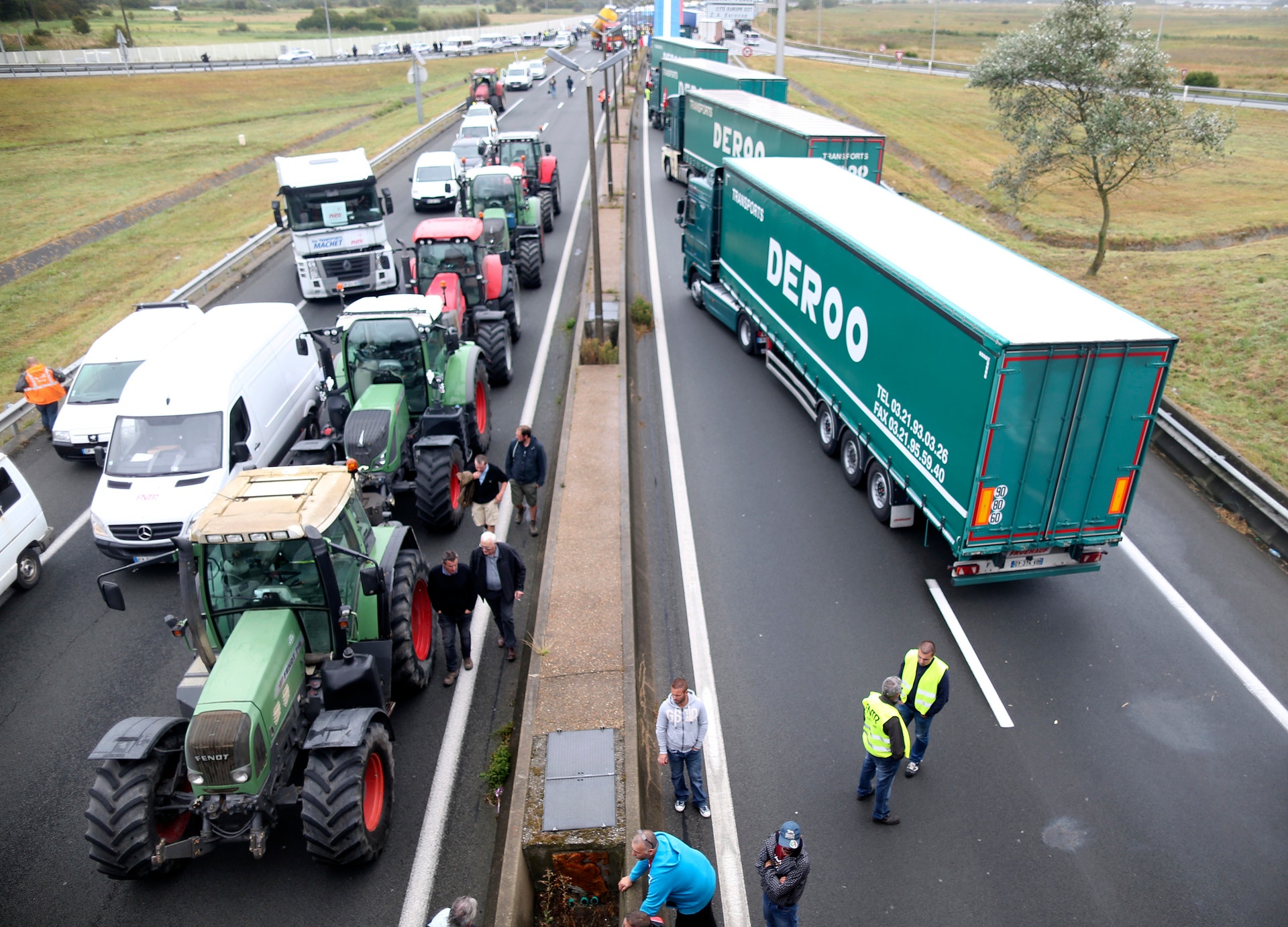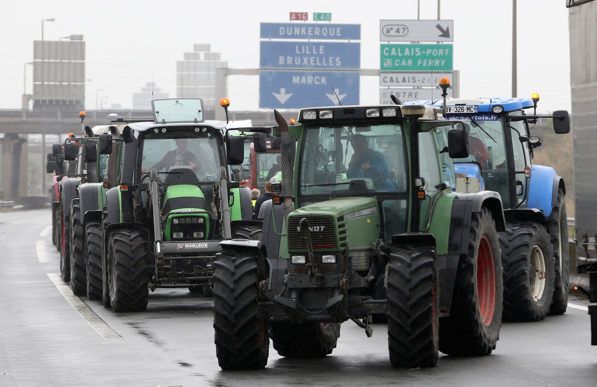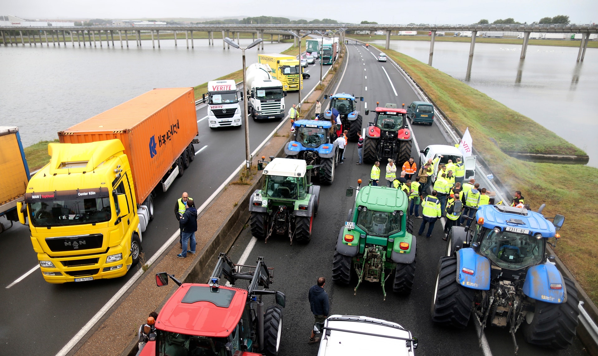 Os camiões de transporte estão a convergir desde as 06h00 da manhã para Calais, no norte de França, causando enormes engarrafamentos nas auto-estradas. Durante o protesto juntaram-se-lhes agricultores para bloquear em cortejo a A16, a mais usada pelos transportadores europeus para levar carga para Inglaterra via porto de Calais ou Túnel da Mancha.