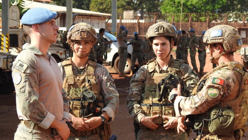 O total de militares portugueses em forças nacionais destacadas em missões internacionais de manutenção de paz é de 560, sendo que 25 são mulheres. O contingente nacional na Missão de Treino da União Europeia na República Centro-Africana (EUTM RCA) é composto por 57 militares, dos quais quatro são mulheres: três portuguesas e uma brasileira, segundo dados da Embaixada de Portugal em Brasília.