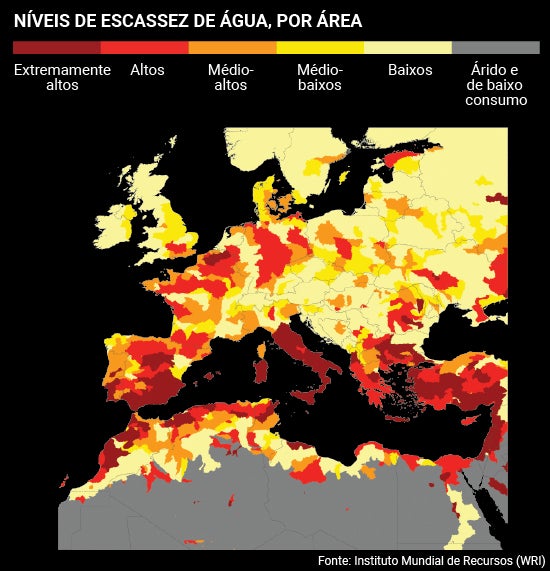 Entre os 27 países que enfrentam um risco elevado de escassez de água encontram-se Portugal, Espanha, o Chile, a Bélgica e o Chipre. Aqui, mais de 40 por cento dos recursos hídricos disponíveis são captados a cada ano.