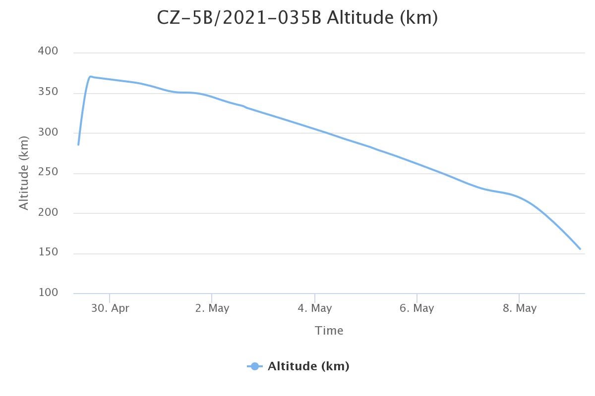 Jonathan McDowell, astrofísico do Harvard-Smithsonian Center for Astrophysics refere num artigo cientifico que “Os dois lançamentos do CZ-5B deixaram o estágio primário em órbita para uma reentrada descontrolada. São mais de 20 toneladas. Tem sido uma prática padrão nos últimos 30 anos, para todas as entidades que colocam carga no espaço, de não deixar objetos tão grandes - ou mesmo metade deste - em órbita sem garantir a sua reentrada controlada.