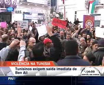 “Não a Ben Ali” ou “Ben Ali assassino” tinham sido algumas das palavras que perpassaram a mole humana concentrada na Avenida Habib Bourguiba. Milhares de pessoas, num movimento de contestação sem precedentes na história recente da Tunísia, atravessaram a pé o coração de Tunes, rumo ao edifício do Ministério do Interior. Aí chegados, contestaram o “ministério do terror”, renderam “homenagem ao sangue dos mártires” e acusaram o clã do Presidente de ter “pilhado o país”.