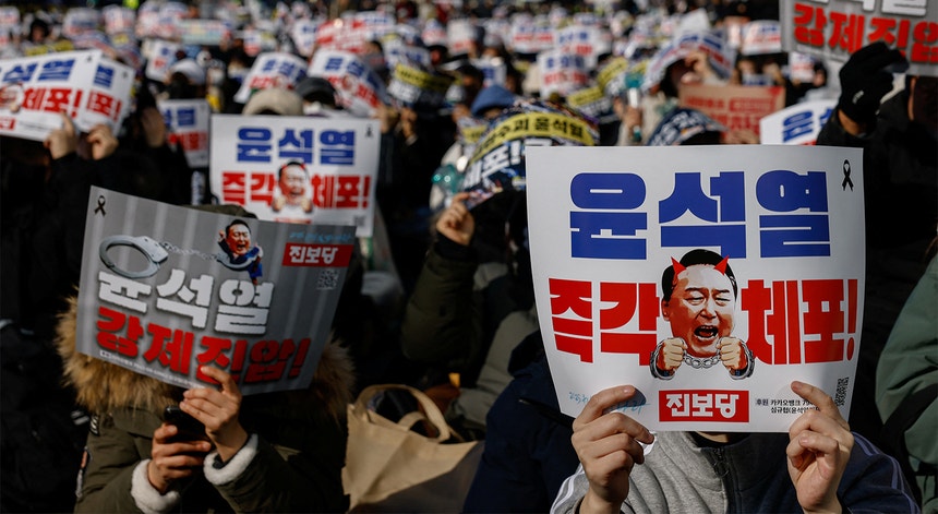 Milhares de pessoas estão concentradas em frente à residência oficial do presidente da Coreia do Sul. Exigem o cumprimento do mandado de detenção do ainda chefe de Estado. Ontem, a Guarda Presidencial impediu que as autoridades detivessem para interrogatório o presidente acusado de tentativa de golpe.