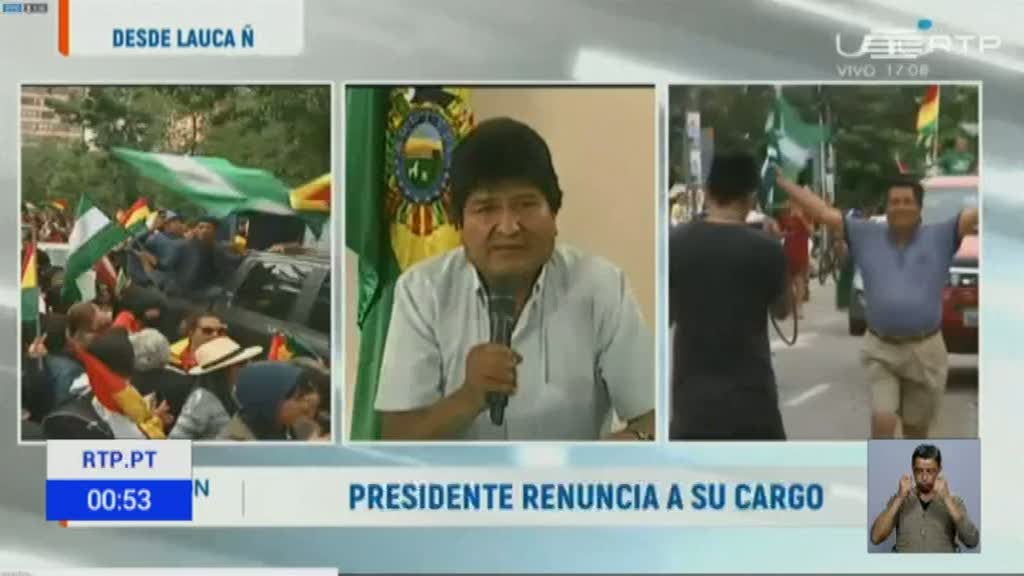Evo Morales acusa o ex-Presidente, Carlos Mesa, e o líder dos protestos da oposição, Luis Fernando Camacho, de cometerem um golpe de Estado.