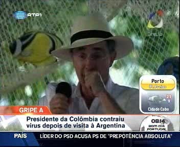 As autoridades colombianas informaram que o presidente da Colômbia Alvaro Uribe está infectado com o vírus H1N1. A situação do chefe de Estado está a evoluir "favoravelmente". Uribe poderá ter infectado outros líderes da América do Sul que estiverem reunidos em Bariloche, na Argentina.