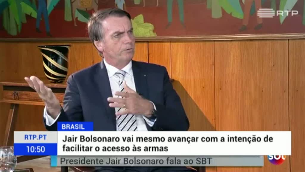Jair Bolsonaro vai mesmo avançar com a intenção de facilitar o acesso às armas. Em entrevista exclusiva à SBT, a primeira desde a tomada de posse, o presidente do Brasil garante que a violência vai sofrer uma forte quebra no país.
