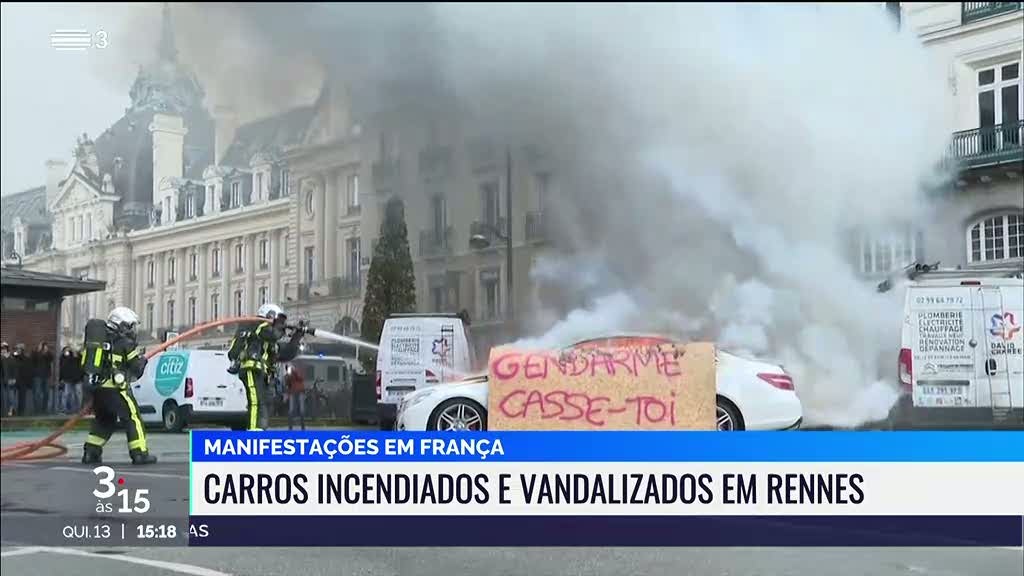 Rennes, no nordeste da França, foi outra das cidades que registaram distúrbios assinaláveis, com centenas de jovens a incendiarem a porta de uma esquadra da polícia e a entrada de um antigo edifício religioso.